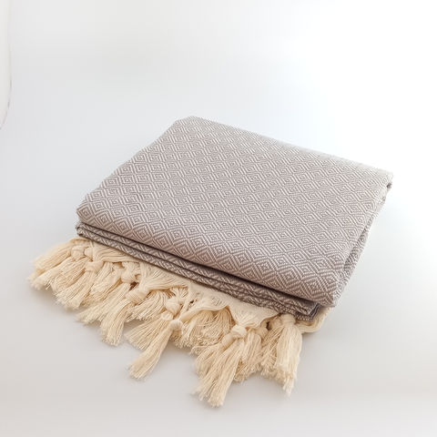 Our strikingly soft Diamond peshtemals are designed with a traditionally featured decorative diamond weave patterns and twisted tassels.